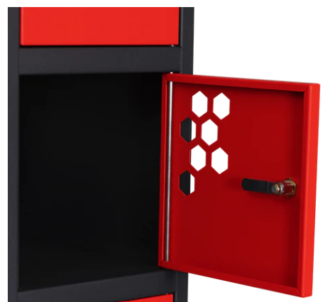 The secure key cam lock mechanism feature provides peace of mind, ensuring each compartment remains safely locked. Finished with an antibacterial epoxy powder coat, the PWS6K offers safety, durability, and ease of use for busy worksites.